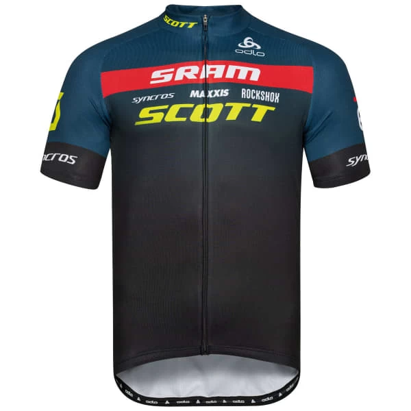 Le SCOTT SRAM REPLICA STAND-UP COLLAR S/S FZ de chez Odlo est un haut de cyclisme à manches courtes et col montant pour homme qui possède une ouverture zippée sur le devant pour faciliter son utilisation.